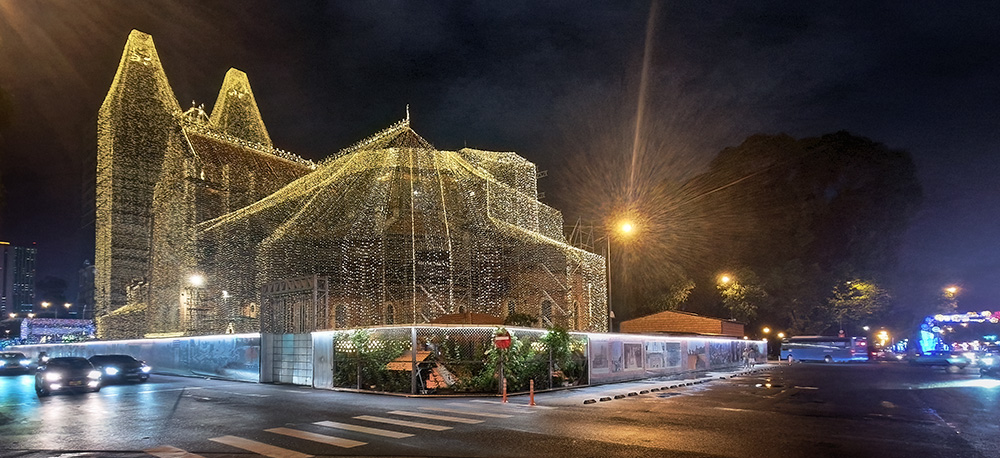 staden sitt namn, och passerar ett juldekorerat Nhà thờ Đức Bà Sài Gòn, som i dagligt tal går under namnet Saigons Notre Dame. Lite överallt längs gator och i parker möter vi Uncle Ho, som erbjuder visdomsord på klassiska kommunistaffischer.